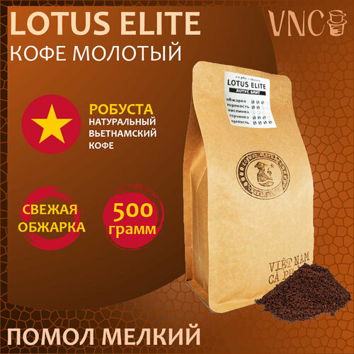 Кофе молотый Lotus Elite VNC, 500 г, мелкий помол, свежая обжарка, премиальная робуста из Вьетнама