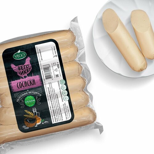 Сосиски Вего чикен, растительный продукт VEGO, 400 г