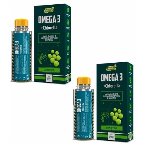 Масло льняное в капсулах "Хлорелла" 0,3 г №180 (Компас здоровья) 2 шт в наборе