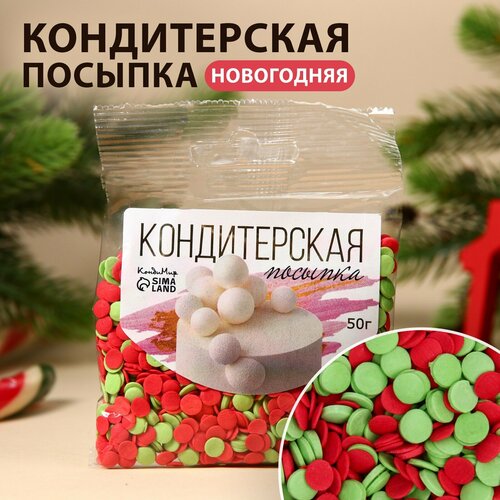 Посыпка кондитерская "Новый год" декоративная Конфетти (красное, зеленое), 50 г