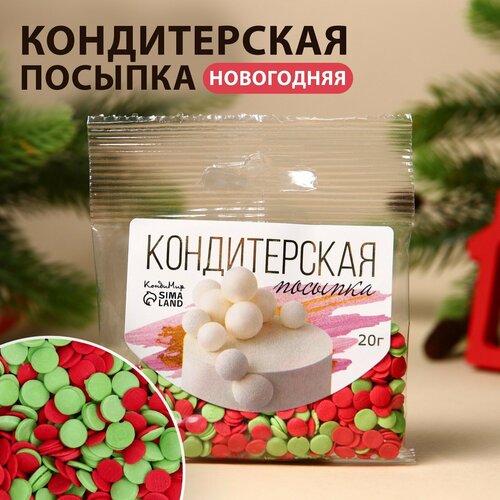 Посыпка кондитерская "Новый год" декоративная Конфетти (красное, зеленое) 20 г