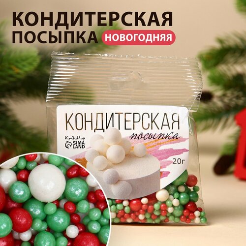 Посыпка кондитерская "Новый год" в цветной глазури (зеленый, красный, белоснежный), 20 г
