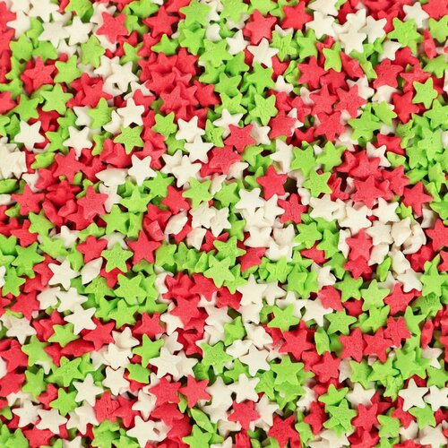 Посыпка кондитерская "Новый год" декоративная Звездочки (зеленые, красные, белые) 20 г