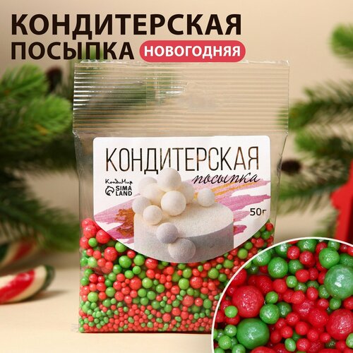 Посыпка кондитерская "Новый год" Бисер цветной (Зеленый, красный),50 г