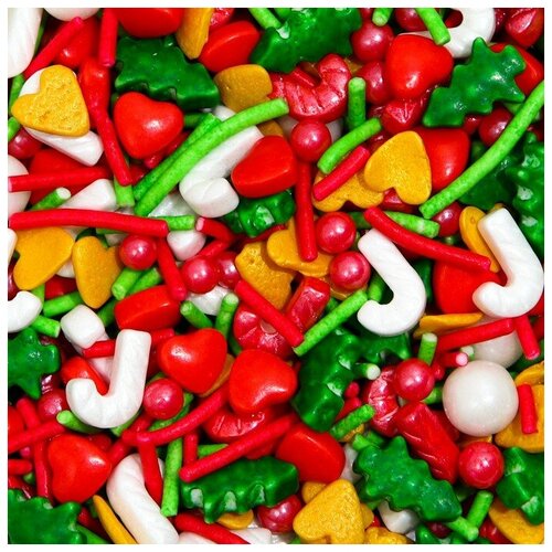 Посыпка кондитерская "Новый год" с мягким центром, (зеленые, белые), 50 г