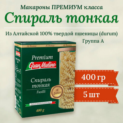 Макароны Granmulino Премиум Спираль тонкая 400гр (5шт)