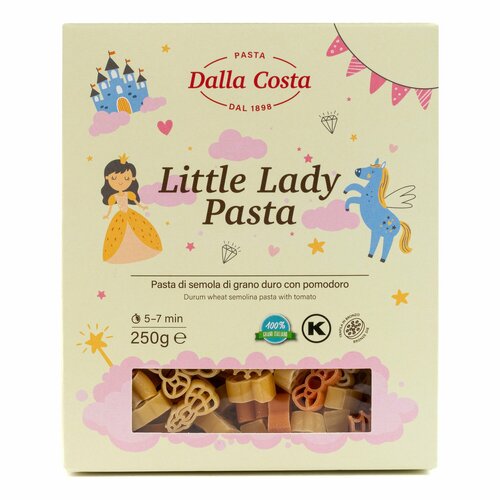 Макароны фигурные Dalla Costa Маленькая леди, с томатоми, без добавления яиц, 250 г