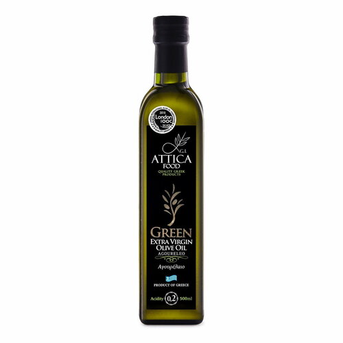 Oливковое масло Attica Food GREEN 500мл, нефильтрованное, кислотность 0,2% (Греция, Пелопоннес, Extra Virgin, стекло)