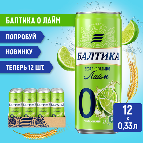 Пивной напиток Балтика №0 Лайм безалкогольное, 12 шт. х 0,33 л, банка