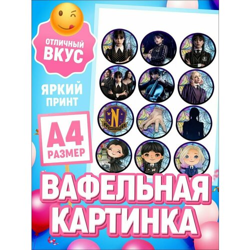 Украшения для торта. Вафельная картинка на торт "Уэнсдэй". Декор для выпечки
