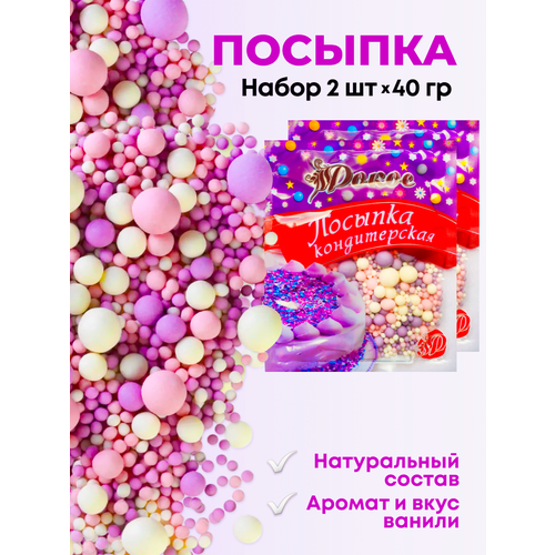 Посыпка кондитерская , драже рисовое в глазури, украшение для торта, выпечки, куличей 2 пакета по 40 г