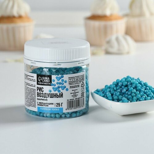 Рисовые шарики блестящие «Голубые» для капкейков и тортов, 25 г.