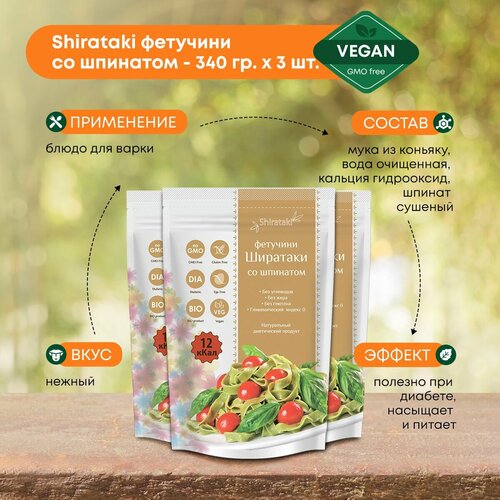 Shirataki Shirataki, Ширатаки фетучини со шпинатом 3 штуки
