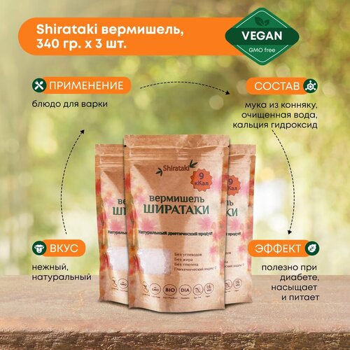 Вермишель натуральная (лапша, спагетти ) Shirataki Ширатаки без глютена, диетическая, 340г, 3 упаковки