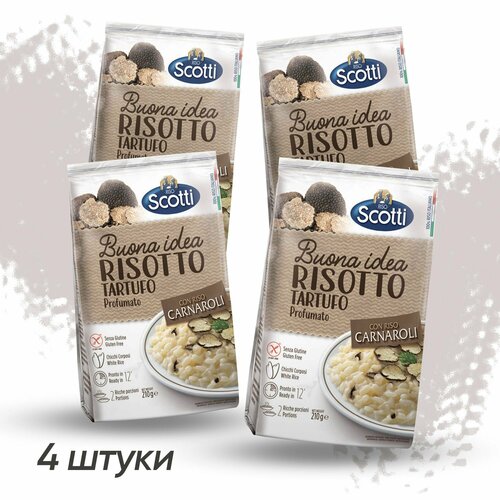 Рис белый Карнароли, Ризотто с трюфелем 4 шт, Riso Scotti Risotto Tartufo 210 г, без глютена / Готовый гарнир и блюдо / Итальянские продукты