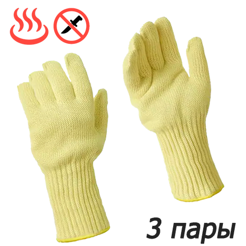 3 пары. Перчатки параарамидные (кевларовые) 2-х слойные АС (анкат ХОТ протект), 10 (XL) размер