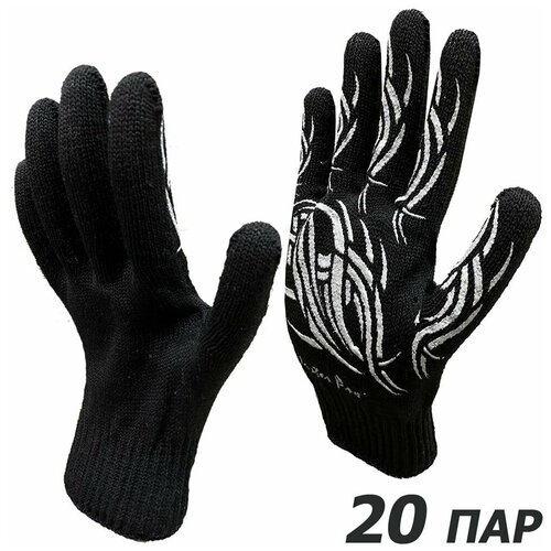 20 пар. Категория А. Перчатки рабочие с ПВХ покрытием Master-Pro ТАТУ БЛЭК, 10 класс вязки, плотность 5/10, р-р 9 (L)