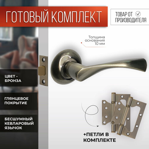 Ручка VETTORE R07.023 AB + Защелка C-03B 100 KEVLAR + Петли FLUSH 100*75 бабочки (Бронза)
