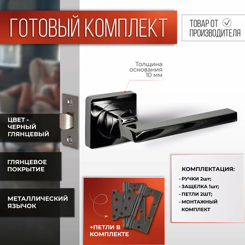 Ручка дверная VETTORE R06.031 BN + защелка металлическая C-03B 100 BN + Дверная петля FLUSH 100х75х2.5 (Черный Никель)