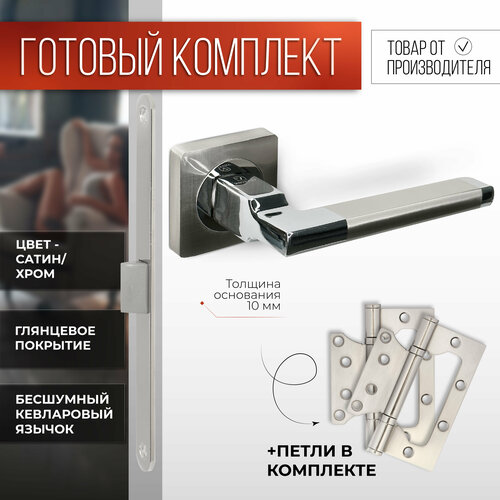 Ручка дверная VETTORE R07.023 SN/CP (сатин/хром) + дверной поворотник BK 0705 + Врезной замок WC 170 B-S NI + Дверная петля FLUSH 100х75х2.5