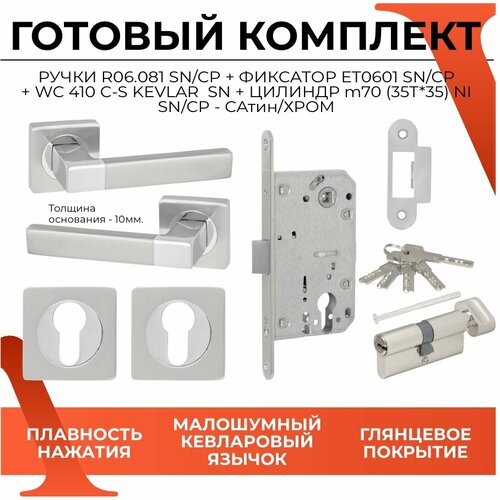 Ручка дверная VETTORE R06.081 SN/CP + Декоративные накладки ET 0601 SN/CP + Врезной замок 410 C-S kev NI + Цилиндровый механизм ZN M60 30T*30 SN/CP