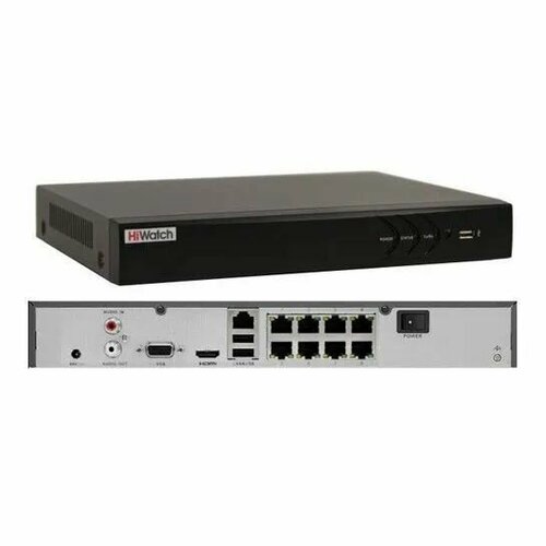 IP Видеорегистратор сетевой NVR HiWatch DS-N308P(D) 8 POE портов сетевой 8-ми канальный 8МП 4096x2160 30к/с на канал H.265+