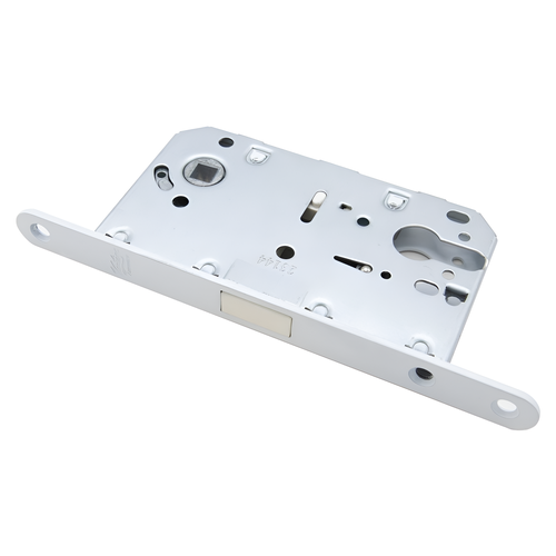 Замок под цилиндр врезной межкомнатный Vantage MC85WH, с магнитным язычком, межосевое расстояние 85 мм