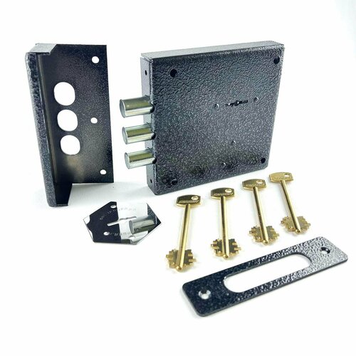 Замок дверной и гаражный накладной CERBER СК-825 116 (4 ключа по *60 мм) с ответной планкой и запорной пластиной