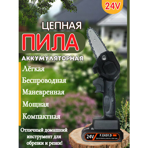 Цепная электрическая мини-пила/24Вт /легкая и удобная/защита двигателя/Li-Ion/черный