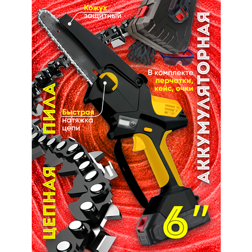 Электропила цепная аккумуляторная 6 дюймов, 18 В, 2 АКБ / мини пила