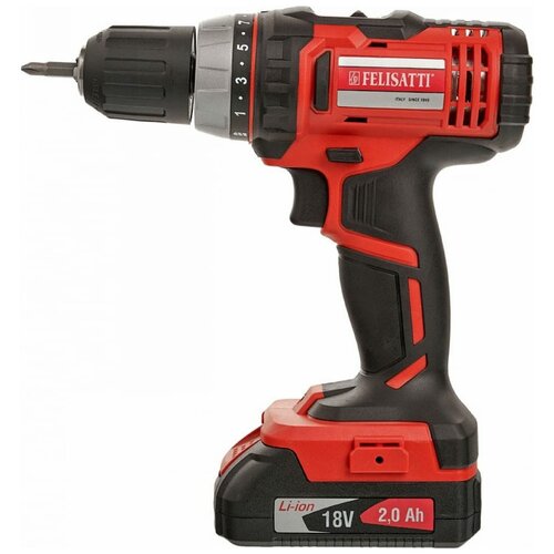 Бесщеточная аккумуляторная дрель-шуруповерт FELISATTI ДА-18В 2х2 А/ч (198.5.3.00) в кейсе с 3 съёмными насадками