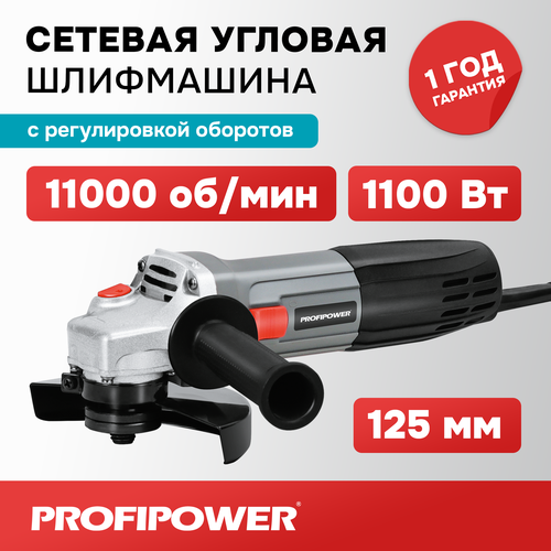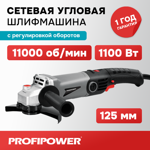 Сетевая УШМ (болгарка) Profipower PGS-1100R (1100 Вт, 125мм, 11000 об/мин, с регулировкой оборотов)