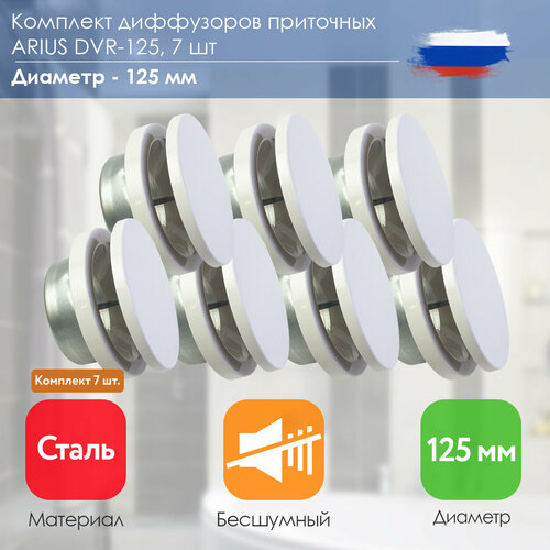 Комплект 7 шт. Диффузор/Анемостат приточный шумоподавляющий стальной ARIUS DVR-125 (арт. 135563), 125 мм, RAL 9016