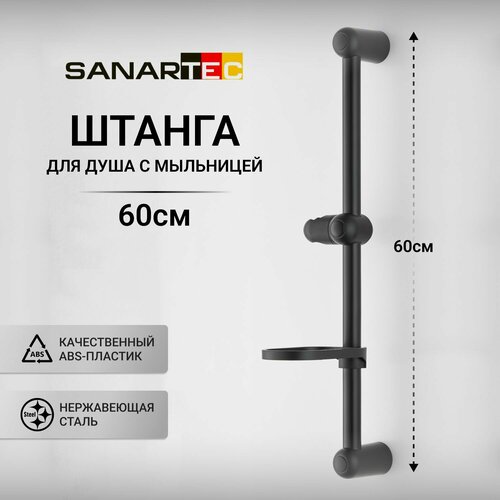 Штанга-стойка Sanartec, для душа, пластик, нержавеющая сталь, длина 60 см, чёрный цвет