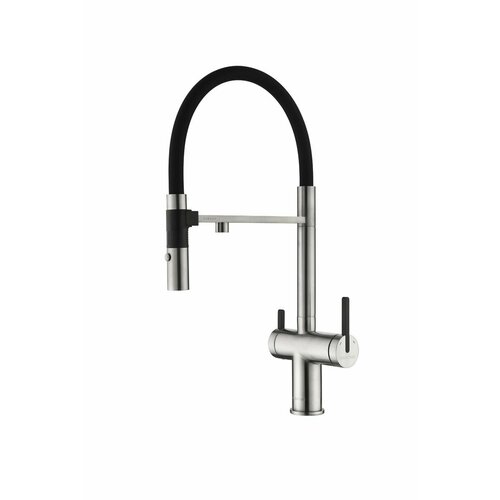 Смеситель для кухни с гибким изливом Paulmark GRAVITY, латунь, цвет нержавеющая сталь, Gr213888-BS