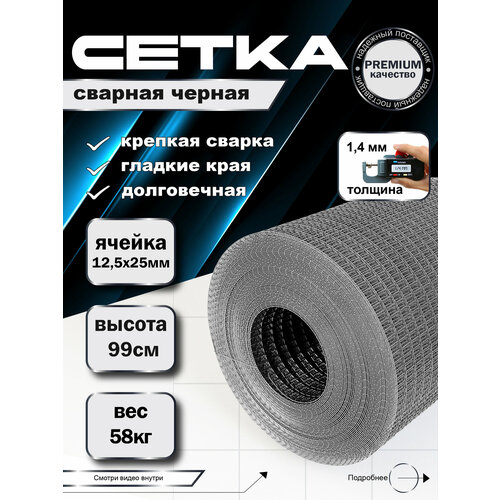 Сетка сварная оцинкованная 12,5х25х1,4мм строительная (ячейка 12,5х25мм, d-1,4мм, рулон 1х50м, высота 99см) PREMIUM