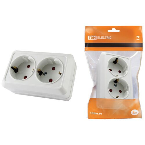 Розетка угловая двойная 2П+3 открытой установки с з/ш IP20 250В 16А "Ладога" TDM