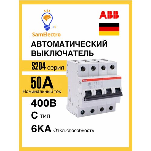 Автоматический выключатель четырехполюсный ABB S204 C 50A 2CDS254001R0504