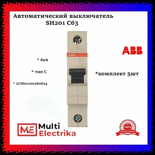 Автоматический выключатель ABB SH201 С63 6кА тип C 2CDS211001R0634 -5шт