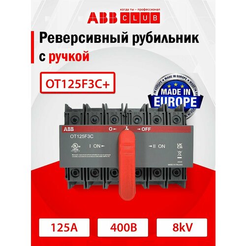 Реверсивный рубильник ABB OT125F3C 125А IP20 DIN 6P с красной ручкой переднее управление, 1SCA105037R1001