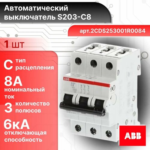 Автоматический выключатель ABB S203 3P C 8А 6кА 2CDS253001R0084