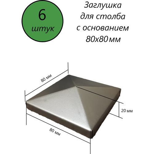 Заглушка квадратная, наконечник, навершие на забор, крышка для столба, кованый декор на трубу 80х80 мм. В наборе 6 шт.