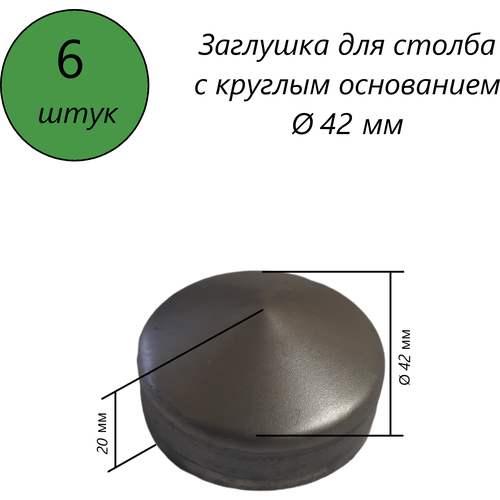 Заглушка круглая, наконечник, навершие на забор, крышка для столба, кованый декор на трубу диаметром 42 мм. В наборе 6 шт.