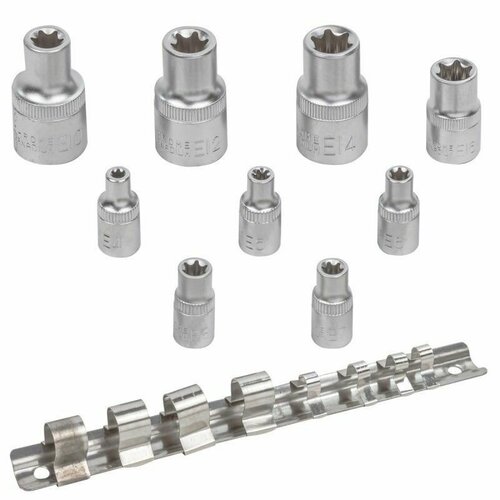 Набор головок Е-профиль 9 предметов, на металлической планке BM-4098(1/4",1/2")