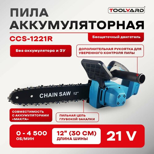 Аккумуляторная бесщеточная цепная пила TOOLYARD, 21V, 12 дюймов без АКБ без ЗУ