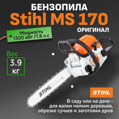 Бензопила Stihl MS 170 14" - бытовая пила для ухода за деревьями и заготовки дров, пригодная для частой эксплуатации. Оснащена высо...