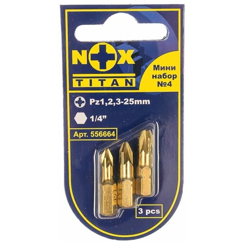 Набор бит Nox, Titan №4, Pz1,2,3, 25 мм, 3 шт