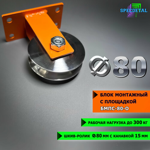 Блок монтажный ф80 окрашенный с площадкой спецдеталь шкив-ролик с подшипником и канавкой для троса