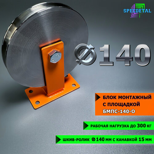 Блок монтажный ф140 окрашенный с площадкой спецдеталь шкив-ролик с подшипником и канавкой для троса