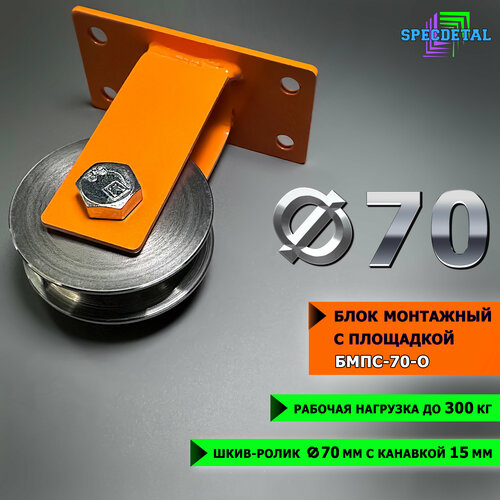 Блок монтажный ф70 окрашенный с площадкой спецдеталь шкив-ролик с подшипником и канавкой для троса